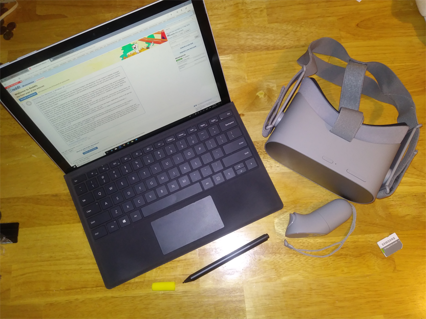 I’m making progress on my video game, I swear! Anyway, it’s been almost 4 years since I first purchased my beloved Surface Pro 3 tablet (my initial review can be seen in this blog article), and after the screen finally cracked, I found myself upgrading to the new Surface Pro (2017) model around March 2018. I also just purchased and have been testing the new Oculus Go, a standalone device from Oculus and Facebook that doesn’t require a high-end phone, computers, or cables to allow a user to experience virtual reality. I have thoughts on my experience using the Surface tablet for four years, thoughts on the new version of the tablet, and thoughts on the new VR headset.