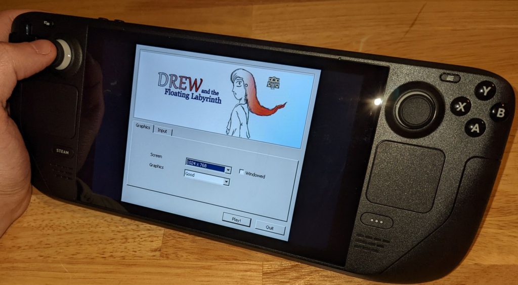 So I can proudly say that my games “Drew and the Floating Labyrinth” and “Unfinished – An Artist’s Lament” are verified to work well on Steam Deck… sort of. If I had no Linux build of these in Steam, then I could truly say they’re verified to work, but their existence requires the user to do some extra tinkering. I don’t know if Steam allows developers to enforce a default on whether to use Proton from their admin pages, or if this is just something that devs need to communicate to users that pay attention. Anyway, it’s disappointing how bad Linux’s handling of old apps is, but it’s super cool how much progress Steam, Proton and Wine have made to fix this for the future.
