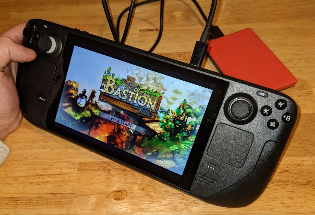 So basically, I’m pleased with the device, especially at this price-point of $399 USD. The build-quality isn’t perfect but is good enough for a casual consumer product. The menus and features will take time to get used to, and may be improved in updates… requiring me to get used to them again. The pioneers of this “portable-gaming” sector in China make slightly smaller devices, but not small enough to dissuade me on the Steam Deck’s relative size. I’d still love to see a device that’s smaller than a Nintendo Switch opposed to bigger, and I can see room here for Valve to make a smaller, cheaper-feeling device in addition to a more-expensive, larger, nicer-feeling, powerful device. I’ll probably start casually going through my Steam library again, playing this in bed or in a sofa-chair, like I do with my Switch – portability makes the draw to pick up a game that much easier.