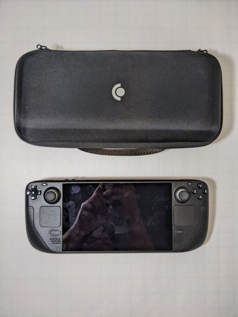 Beyond that, the build quality seems fine. It’s mostly plastic, vaguely similar in feel and durability as I’d expect from the Xbox 360 controller I have. This is good, since I’d be touching the device all the time. The screen looks good enough, although there’s some yellow light bleed from the edges that’s noticeable when dim / dark images are on the screen, and in certain lighting conditions (reminds me of cheaper touchscreen devices from years ago). The touchscreen with smudge with fingerprints as you use it, but feels like nice glass to touch, and I don’t plan to get a screen protector. I’m happy a carrying case is included for free though: I think Valve is fully aware that this computer isn’t that durable for extreme use and travel.