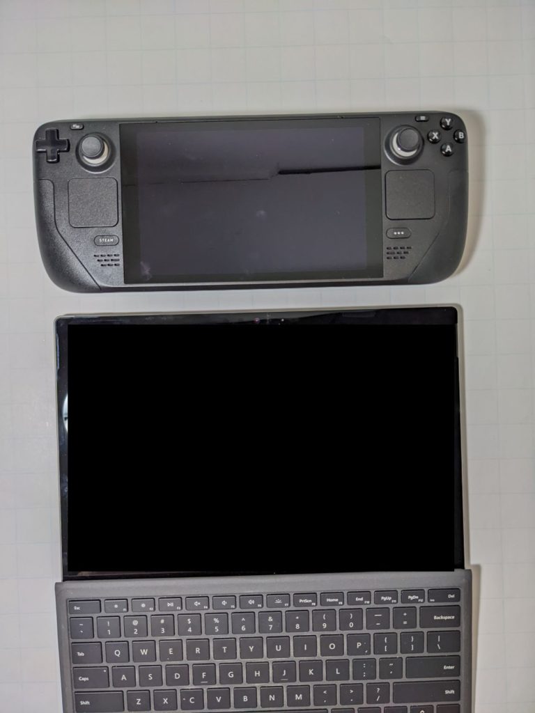Yep, this thing is BIG, exactly matching the width of my Surface Pro (similar in size to an iPad Pro). It almost feels like I’m holding a full-size keyboard in my hand, but heavier. I was already annoyed that smartphones thought it was OK to grow to the size of a phablet, and that the Nintendo Switch pretended to be a “portable” size… but this is a whole new level of silly.