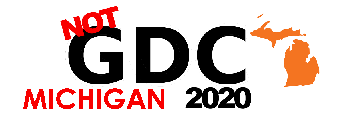 UPDATE (2020-03-13): In the last 48 hours, Michigan confirmed cases of COVID-19 being present. Schools canceled classes. Events of over 100 people are generally canceled, or banned. We had updated “notGDC Michigan” to be online-inclusive, and then online-exclusive when the original location became uncertain. Finally, we regretfully canceled “notGDC Michigan” today. It won’t be held on Saturday, March 14, 2020, but will hopefully be held later this year. It’s frustrating to cancel an event only 24 hours in advance, but for the safety and interest of the local community, it was necessary. Original article remains below.
