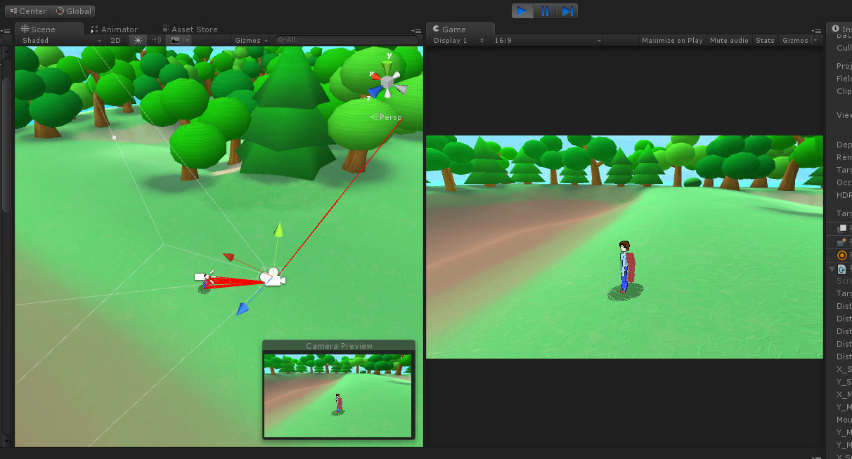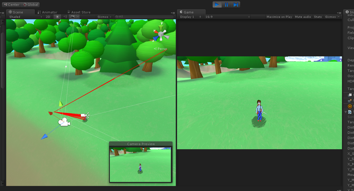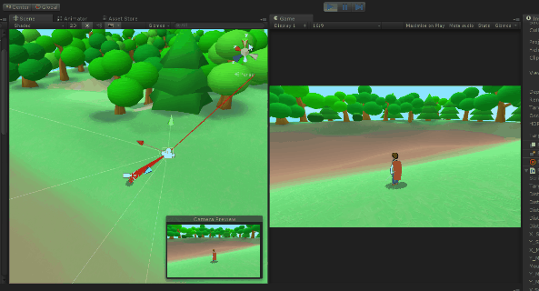 I have to give special credit to both Unity3D’s editor (for allowing some debugging visualization options, albeit not easily accessible) and the open-source “ScreenToGif” program for allowing me to easily capture my computer screen to see the effect in slow motion. Both an animated GIF and some freeze frames are shown below. The conclusion turned out to be exactly what you would think it was: the character frames have to be “looking at” (perpendicular to) the camera at all times, but they always seem to be one frame behind, especially noticeable when there are bigger movements from one frame to another.