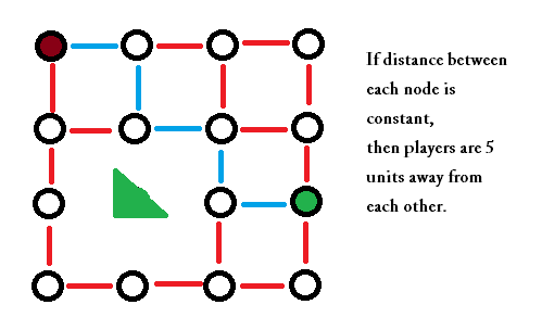 I was hopeful that I could calculate the distance between cells at startup of the game, or even cache it into a file before compiling the game for a static map. Alas, I can’t, because moving players can block paths on more complex maps. So complete distance maps for each AI player must be calculated at each turn (just for the cells where each AI is located; not calculating the distance from every cell to every other cell on the map).